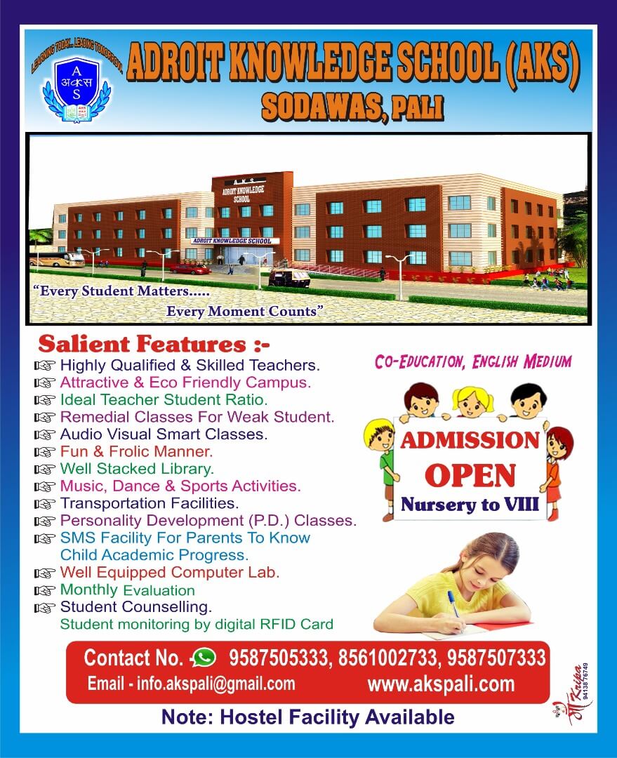 The Adroit knowledge school(AKS) was foundes under Amritraj Sushiladevi Education Society, Pali in order to provide quality education.